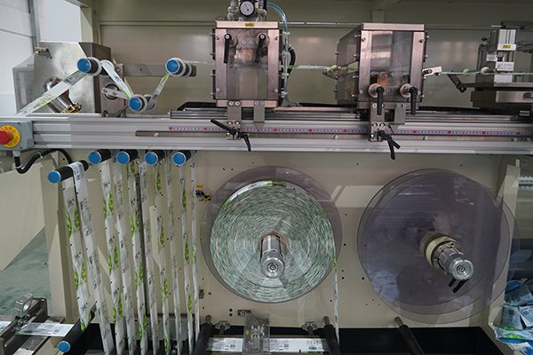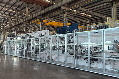 This packaging machine series packages the stacked sanitary napkins and panty liners into bags, then seals the bags. It will also produce the bags before packaging, with the packing material a printed film. Two rolls of printed film with one on and one off operational functions will not stop packaging when changing between either roll, ensuring this packaging machine has a high working efficiency. It will quickly switch between different product specifications, and is easy to operate.